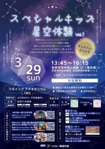2026年3月29日(日)に開催する「スペシャルキッズ 星空体験会」にて、当日の運営をお手伝いしてくださるボランティアスタッフを募集いたします。