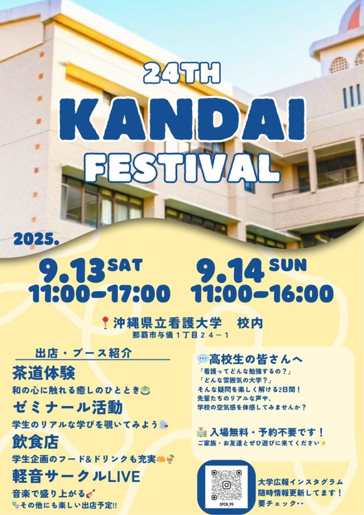 このたび、沖縄県立看護大学の学祭「第24回 看大祭」にて、看護学生のみなさんが自主的に「顔晴れスタンド」を開催してくださることになりました🍋✨